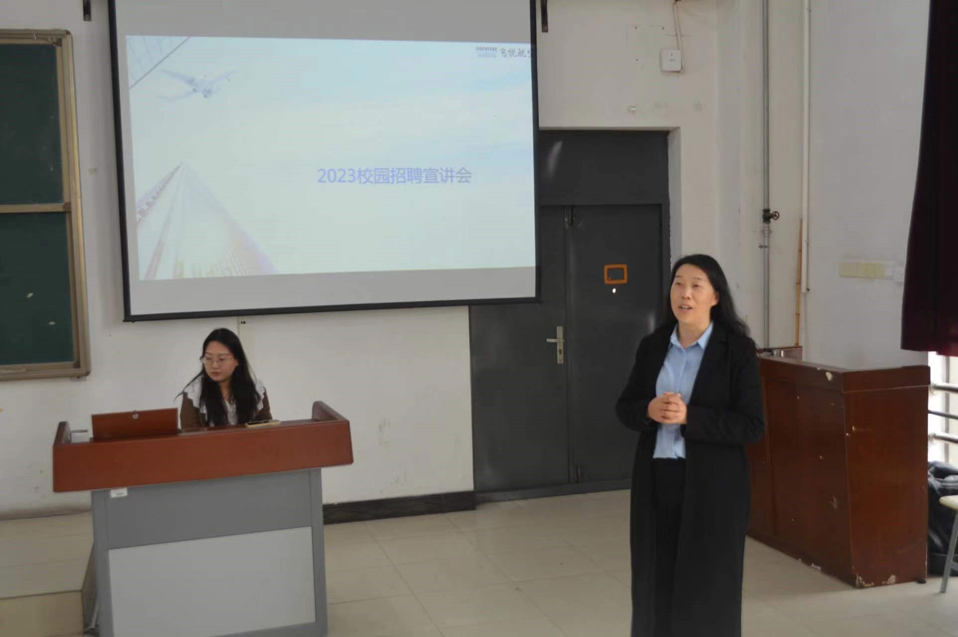 其后,天津飞悦航空科技股份有限公司人力资源部高经理对公司的整体情况进行了全面介绍。天津飞悦航空科技股份有限公司是一家专注于航空航天结构制造的集成方案提供商。产业覆盖大型民航客机、支线飞机及高端公务机的结构零部件和高端大型工艺装备,曾获“国家高新技术企业”、“专精特新中小企业”、“天津市瞪羚企业”、“第十届中国创新创业大赛优秀企业等荣誉”。企业表示愿与学院合作共同培养优秀毕业生,成为企业用得上、留得住、用得好的优秀员工。