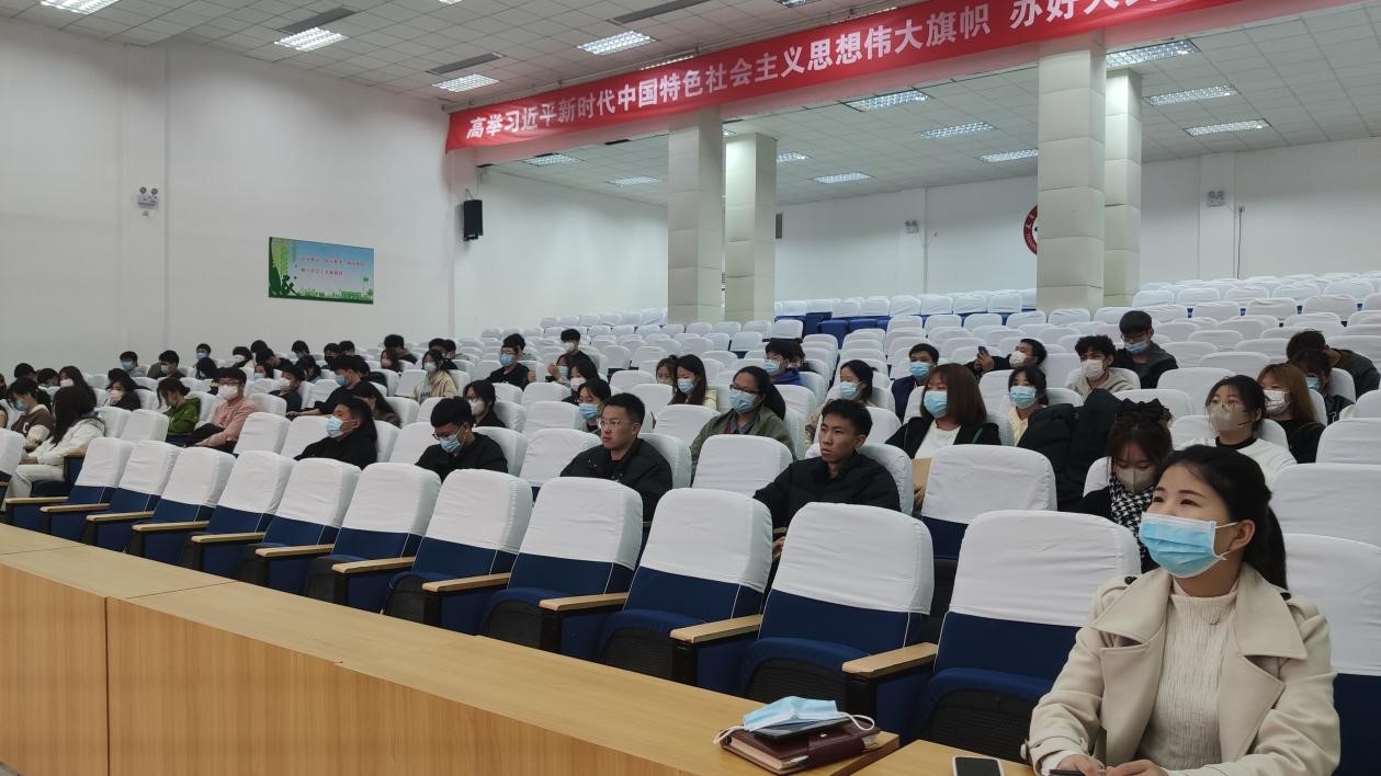 在全国上下学习宣传贯彻落实党的二十大精神的热潮中,为进一步捍卫“两个确立”、树牢“四个意识”、坚定“四个自信”、做到“两个维护”,坚持不懈以习近平新时代中国特色社会主义思想铸魂育人,11月11日,马克思主义学院邀请天津市2022年“学史铸魂担使命 星火相传砺初心”思想政治理论教授团成员李朝阳教授作主题为《从革命新道路探索中汲取贯彻党的二十大精神的力量》的宣讲。会议由马克思主义学院书记、院长李玉梅同志主持,来自六个二级学院的80余名学生代表以及部分思政课教师参加。