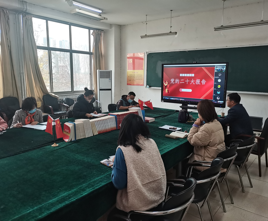 洪军校长指出,党的二十大是一次高举旗帜、凝聚力量、团结奋进的大会,全体教师要把学习宣传贯彻党的二十大精神作为当前和今后一个时期的首要政治任务,从党的百年奋斗中汲取智慧和力量,坚定历史自信,牢记初心使命,全面系统学习领会党的二十大精神。
